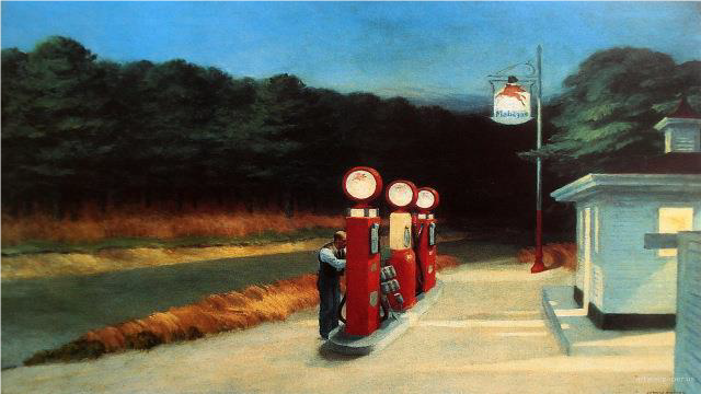 La segunda imagen corresponde a una pintura de Edward Hopper que lleva por título: “Gasolina” (1940)